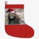 Grande Chaussette De Noël Ours grizzli portant un Casquette du Père Noël