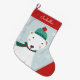 Joli bas de vacances avec une illustration d'un ours polaire portant un casquette et un foulard.