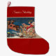 Christmas stocking with Patriotic Santa Claus in his sleigh filled with presents and American flag flying through the night. Double-sided printing.