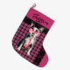 Featuring an adorable Boston Terrier wearing pink heart sunglasses on a pink tartan background with a stylish black lace border, this stocking combines festive charm with a quirky, fashionable twist.