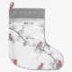Red Birds Grey Branches Motif Monogramme Grand stock de Noël Le stockage de Noël comporte un motif de Noël festif fait d'oiseaux rouges sur des branches grises sur un arrière - plan blanc associé à une typographie noire chic pour votre nom personnalisé. Inclut la même conception des deux côtés du stockage.
