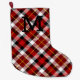 Grande Chaussette De Noël Red Christmas Plaid INITIAL Festive Holiday