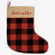 Grande Chaussette De Noël Rouge moderne Plaid & Nom Grand Stocking de Noël