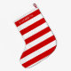 Grande Chaussette De Noël Rouge Wht Horizontal Preppy Stripe #3 Nom Monogram