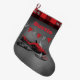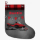 Personalize this stocking by adding a name to this snowmobile stocking with checkered flags, chalkboard background and Buffalo plaid border.