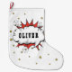 Superhero Comic Speech Bubble Boy Name Christmas Stocking. Ajoutez votre nom.