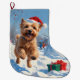 Grande Chaussette De Noël Terrier rouillé en neige avec Casquette de Noël
