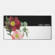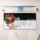 Une grande belle fleur bordeaux avec de la verdure et votre nom fait un tapis de bureau simple mais attrayant.