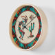 Éclaircissez votre maison avec cette horloge murale en bois Kokopelli Sud-Ouest "One of a Kind"! Il comprend un Kokopelli sud-ouest jouant de la Flûte et dansant autour d'un cactus sous le soleil sur un Arrière - plan de grès tan...Entouré d'une frontière sud-ouest en Turquoise, Orange & Noir! Design D'Art Original Par L'Artiste Kerry Miller.