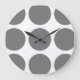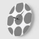 Mignonne et tendance Grande horloge murale Pois. Ce design présente des pois grand cercle surdimensionnés en gris et blanc. Un texte peut être ajouté à cette conception pour lui donner une touche personnelle.