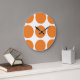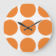 Mignonne et tendance Grande horloge murale Pois. Ce design présente des pois grand cercle surdimensionnés en orange et blanc. Un texte peut être ajouté à cette conception pour lui donner une touche personnelle.