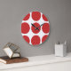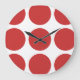 Mignonne et tendance Grande horloge murale Pois. Ce design présente des pois grand cercle surdimensionnés en rouge et blanc. Un texte peut être ajouté à cette conception pour lui donner une touche personnelle.