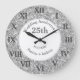 Horloge argentée 25e anniversaire de mariage. Personnalisez-la avec votre date, anniversaire et noms.