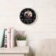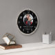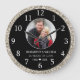 Horloge murale unique pour 25e anniversaire pour célébrer 25 ans d'amour. Personnalisez l'horloge de mariage noire et argentée unique avec la photo du couple, le nom et les années.
