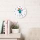 Rêvez d'une île tropicale avec cette horloge à boisson tropicale mignonne et drôle ! Cette horloge vous dit qu'il est 5 heures quelque part. Le 5 n'est nulle part à trouver et à sa place est le mot "quelque part". Au milieu se trouve une boisson tropicale bleu aquarelle avec une tranche d'ananas, cerise et petit parapluie rose. Arrière - plan blanc.