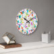 Grande Horloge Ronde Abstrait Confetti Toss Sur Blanc