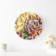 Grande Horloge Ronde Abstrait Jaune Rose Lumière Artistique Floral Glow
