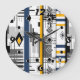 Grande Horloge Ronde Abstrait moderne noir blanc jaune ornement geo