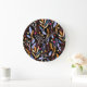 Grande Horloge Ronde Abstrait Plantes d'aquarelle herbes Motif