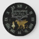 This clock has a quote from the classic book Alice's Adventures in Wonderland. "Explanations take such a dreadful time".