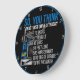 Cette horloge murale souligne la réalité complexe d'être un conducteur de camion, au-delà de la simple conduite. Contre un arrière - plan noir avec une jante bleue, il présente une illustration de semi-camion bleu. Le texte "DONC, VOUS PENSEZ QUE JE CONDUIS JUSTE UN CAMION? 13 GEARS 18 ROUES 40 TONNES 54 PIEDS LONG 500 HORSEPOWER 1800 LBS OF TORQUE VOUS FAITES LA MATHÉTIQUE!" est affiché, soulignant la puissance et la technicité de la profession.
