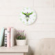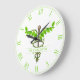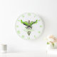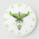 Grande Horloge Ronde Alternative Médicale Caduceus Vert Feuilles Blanc