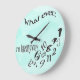 Grande Horloge Ronde Amusant Quoi que je sois Aquarelle Turquoise tardi