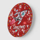 Grande Horloge Ronde Amusants enfants garçons roquette espace noir roug
