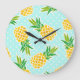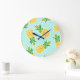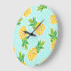 Grande Horloge Ronde Ananas Exotiques : Polka Bleu-Dot Amusant.