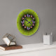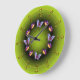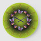 A pretty butterfly decorated clock with purple gold and blue butterflies on a graduated green et dark green background. Clock details are in a metallic gold colour with gold and red highlights and two gold.