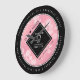 Célébrez le 2e anniversaire du mariage de quartz rose et un amour qui résiste à l'épreuve du temps avec cette horloge commémorative! Un élégant lettrage noir et blanc avec des confettis hexagonaux sur un arrière - plan rose riche ajoute une touche mémorable pour cette occasion spéciale et cette étape importante. Customisez avec les noms du couple, les années de mariage et les messages de félicitations. Design © W.H. Sim. Voir plus sur zazzle.com/expressionsoccasions