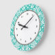 Grande Horloge Ronde Aqua turquoise Teal damask