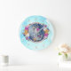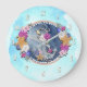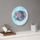 Grande Horloge Ronde Aquarelle bleue moderne nautique florale ancre