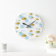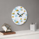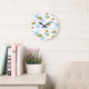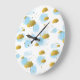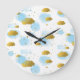 Grande Horloge Ronde Aquarelle bleue Nuages Gold Stars Sky