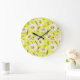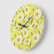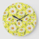 Grande Horloge Ronde Aquarelle marguerite, motif jaune transparent.
