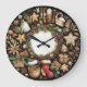 Grande Horloge Ronde Aquarelle Noir Russe Motifs de Noël