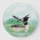 Grande Horloge Ronde Aquarelle Oiseau commun Loon Nature Art