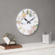 Grande Horloge Ronde Aquarelle Pommes fleurit et Or chiffres romains