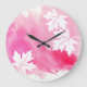 Grande Horloge Ronde Aquarelle rose chaud moderne et feuilles d'érable