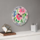 Grande Horloge Ronde Aquarelle rose Fleurs Art