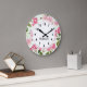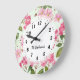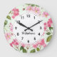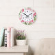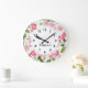 Grande Horloge Ronde Aquarelle rose Hydrangea et anémone japonaise