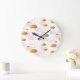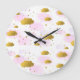 Grande Horloge Ronde Aquarelle rose Nuages Gold Stars Sky