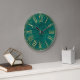 Grande Horloge Ronde Aquarelle vert foncé et étincelles dorées