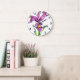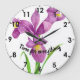 Grande Horloge Ronde Aquarelle violet Iris Botanique Floral Art