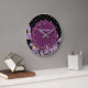 Grande Horloge Ronde Aquarelle violet Iris noir blanc Pois
