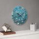 Une horloge murale d'art avec des chiffres romains. L'arrière - plan est le tableau post-impressionniste, Arbre aux amandes en fleurs (1890), de Vincent van Gogh (1853-1890). Des branches de printemps fleurissent sur un arrière - plan bleu aqua.