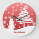 Grande Horloge Ronde Arbre de Noël blanc et Snowman