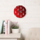 Grande Horloge Ronde Arbres de Noël en argent sur rouge