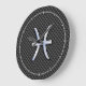 Un chrome comme Pisces Zodiac symbole sur un arrière - plan d'impression en fibre de carbone noire. Un design urbain moderne et racé pour une idée cadeau d'anniversaire sur mesure. Les modèles sont disponibles dans une sélection d'options de couleurs populaires. Utilisez le lien "Demandez à ce concepteur" pour nous contacter avec vos demandes de design spécial ou pour obtenir de l'aide sur vos besoins de personnalisation.