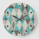 Grande Horloge Ronde Art de l'ère atomique Diamants Turquoise Gris